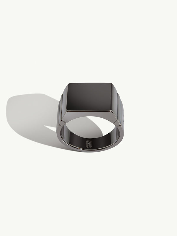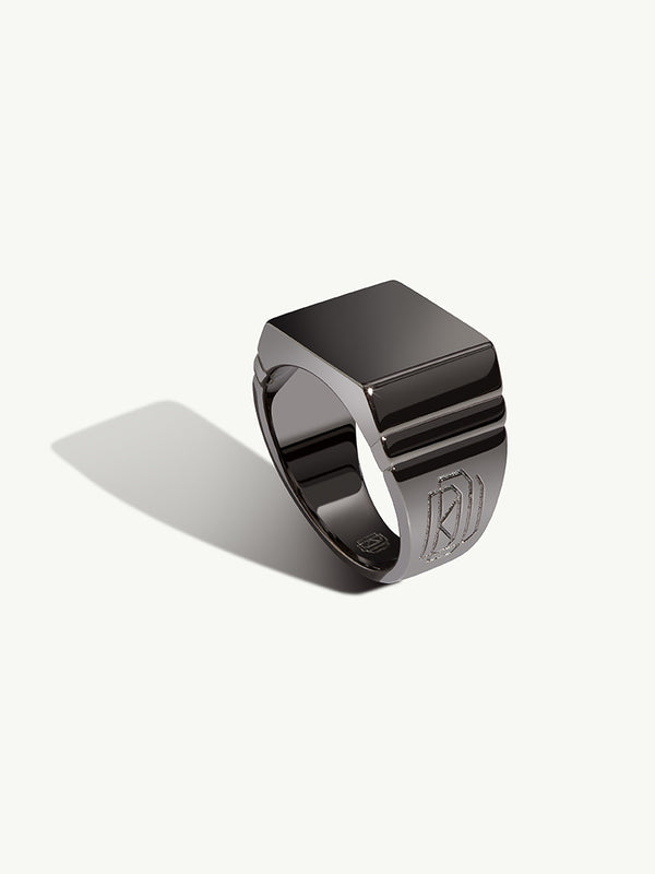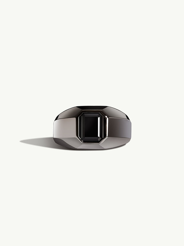 Mini Damian Black Onyx Horn Talisman Ring In Sterling Silver