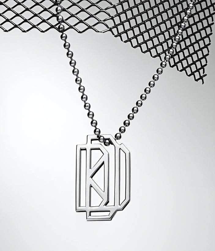 Minimalist and sleek, with ultra-smooth lines that catch the eye. The blade-like Diaboli Kill Monogram Tag Pendant by Angie Marei is hand-crafted from solid platinum precious metal and meticulously hand-polished with attention to detail.