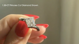 - Brilliant princess-cut white diamond, available in a range of sizes starting from approximately 0.50 carats. The image shows a 1.00-carat diamond for reference