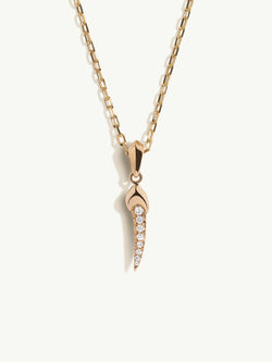 The Damian Horn Talisman Pendant Necklace by Angie Marei is luxuriously handcrafted from 18-karat yellow gold and French pavé set brilliant-cut white diamonds. The powerful sculptural design was inspired by amulets and talismans worn by the ancient Egyptians. This adjustable chain can also be worn as a choker.