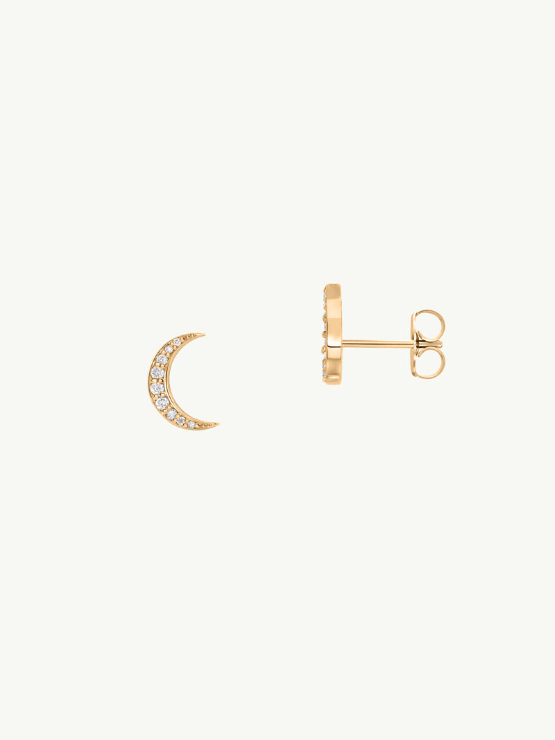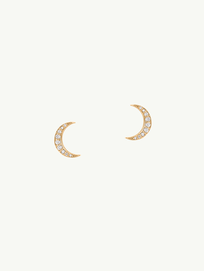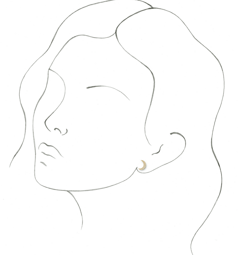 Radiating celestial elegance, the Celestial Moonbeam Stud Earrings by Angie Marei feature shimmering pavé-set white diamonds nestled in graceful moon-shaped settings, handcrafted in luminous 14-karat gold. A timeless symbol of intuition and divine femininity, these studs are perfect for everyday enchantment or layered luxury.
