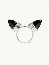 The Levant Horn Ring by Angie Marei in sterling silver embodies strength, mystery, and timeless allure. Two striking prism-cut black onyx gemstones crown the sculptural design, creating a bold yet balanced silhouette that radiates confidence and power.