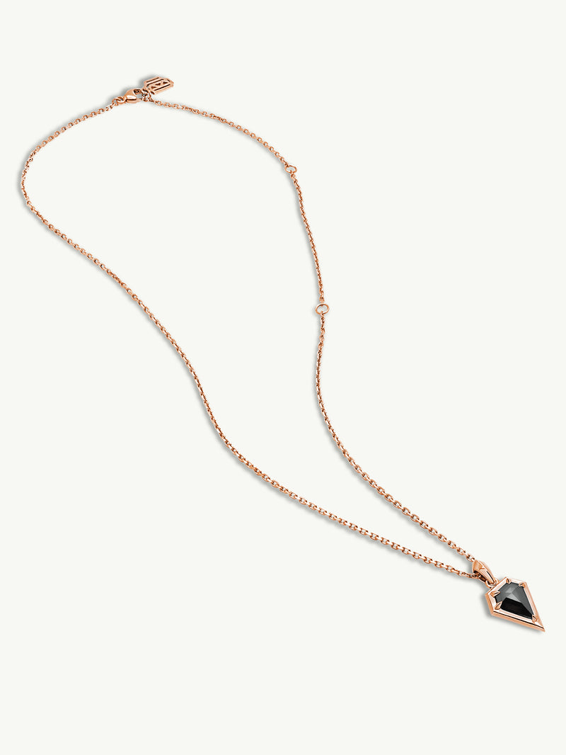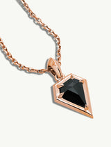 Aphrodite, the goddess of love and beauty, inspired this stunning amulet pendant necklace. The black diamond, a symbol of power and authority, is elegantly set in a solid 18-karat rose gold bezel setting. The length of the chain can be adjusted to be worn as a choker. This luxurious and eye-catching necklace is the perfect accessory that adds a touch of mystery and glamour to any look day or night.