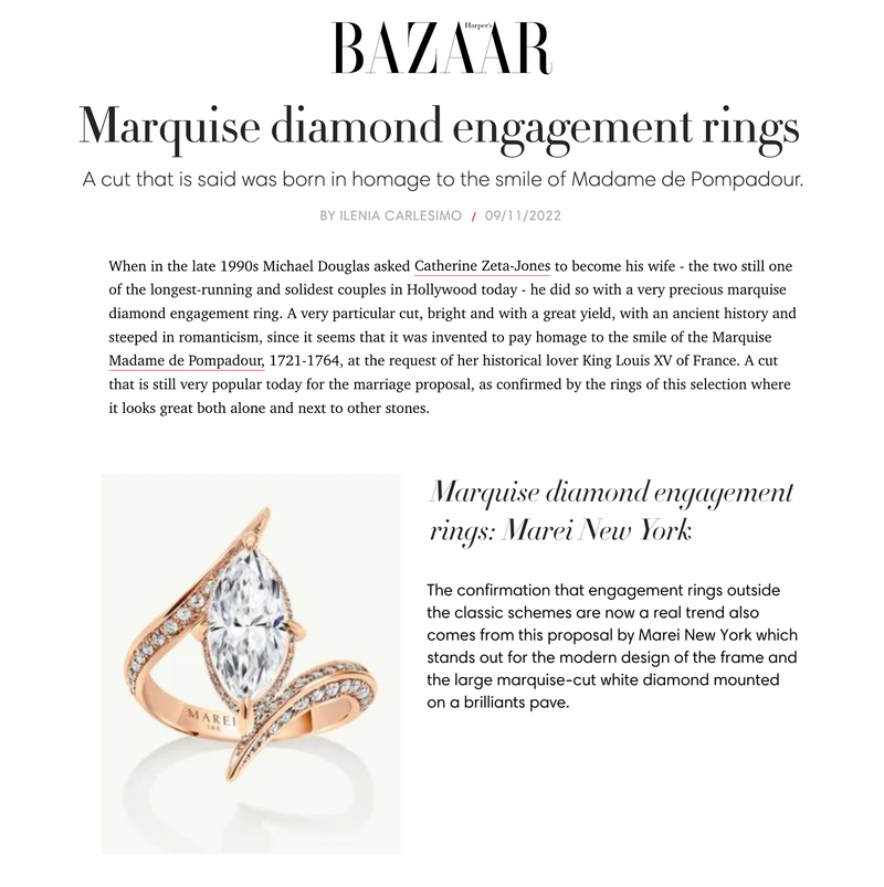 Please allow an estimated time of 8-12 weeks for the production and delivery of made-to-order engagement rings. Lead time will depend on the complexity of the piece. Kindly note, some pieces may require longer lead times. Please get in touch with us for more information and time-sensitive requests at info@mareinewyork.com.