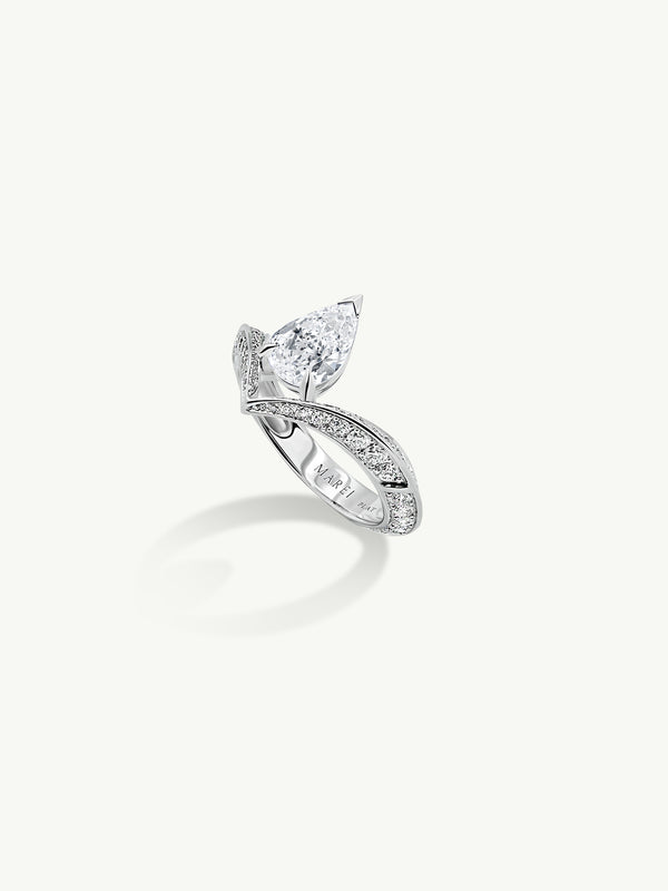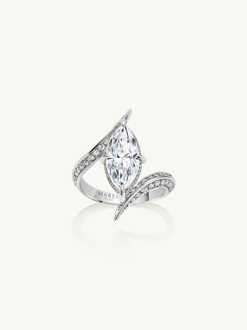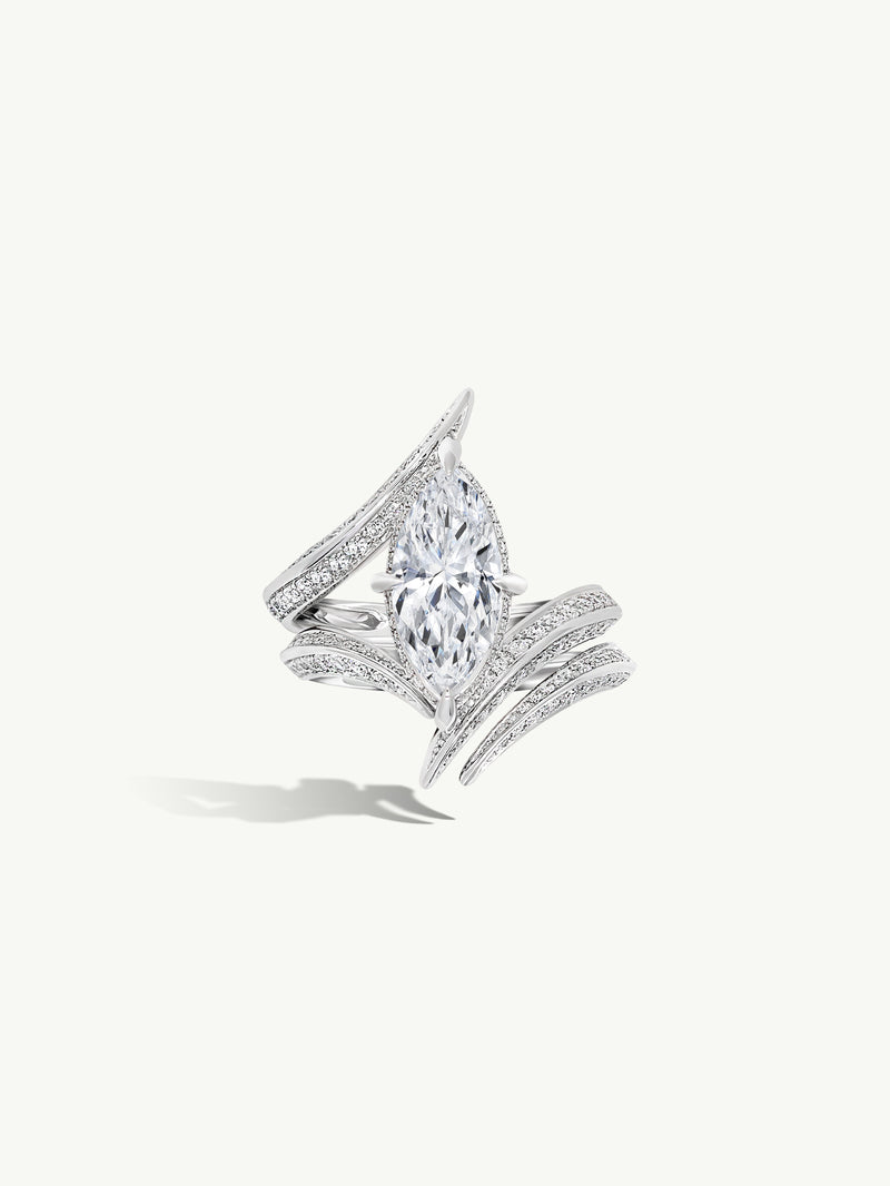 Ayla Arabesque Engagement Ring With Marquise-Cut White Diamond & Pavé-Set Brilliant White Diamonds In Platinum
