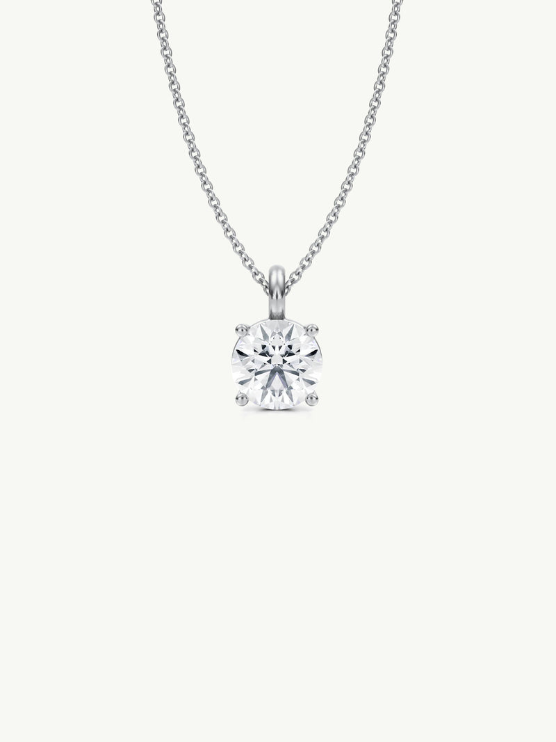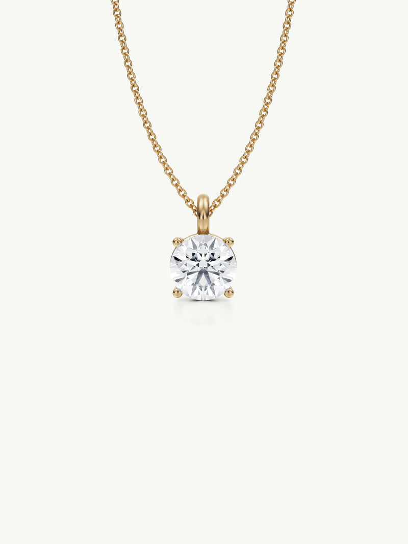The Eternal by Marei Solitaire Diamond Necklace by Angie Marei features a breathtaking 0.70-carat brilliant-cut round white diamond, elegantly set in a timeless 4-prong setting on a 16" chain. Each diamond is meticulously hand-selected for its exceptional beauty, size, color, and clarity, ensuring a radiant and harmonious brilliance. A true embodiment of sophistication and refinement, this necklace is a modern heirloom designed to be cherished for generations.