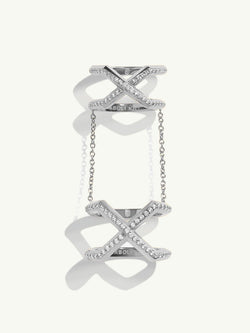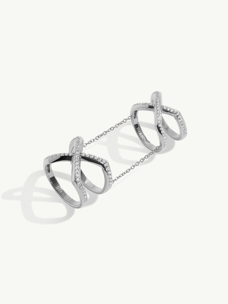 Sophisticated, elegant, and unstoppable. The Exquis Gemini Infinity Ring by Angie Marei, features a unique architectural cross-over infinity design with brilliant, scintillating round-cut white diamonds symbolizing eternal love and power. Exquisitely handcrafted in platinum precious metal.