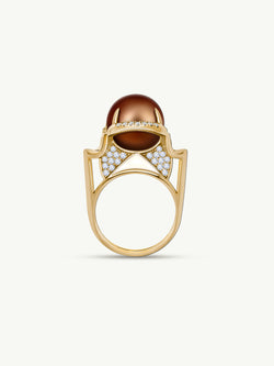 Isis Goddess Ring With Japanese Akoya Chocolate Pearl & Pavé-Set Brilliant White Diamonds In 18K Yellow Gold
