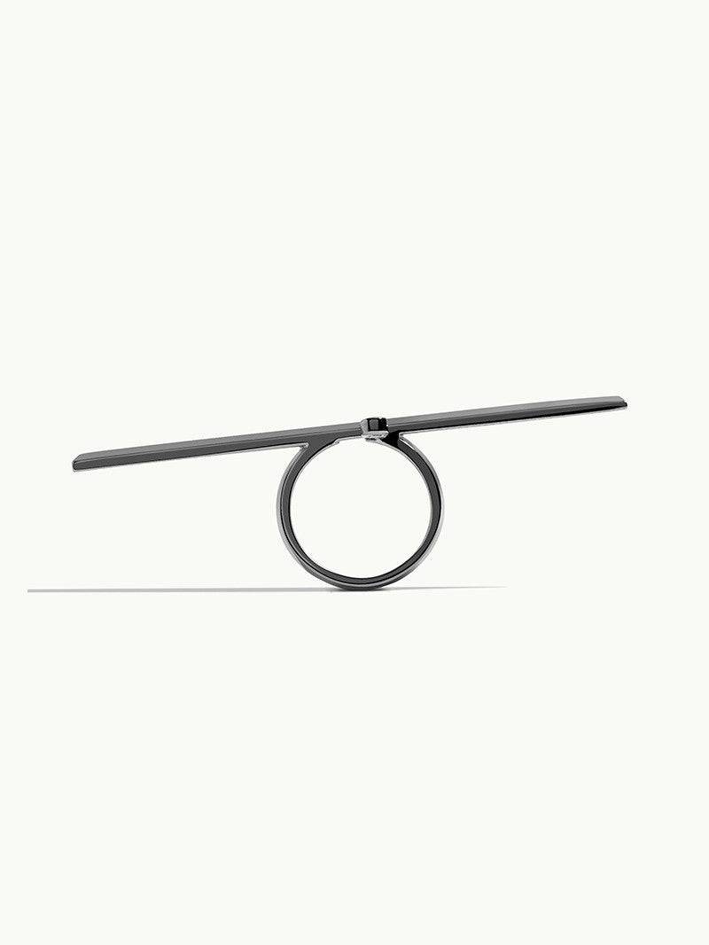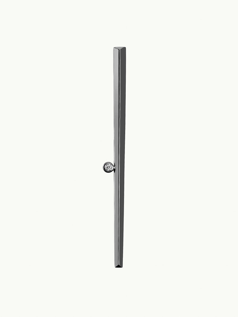 The Lilith Brilliant-Cut White Diamond Bar Ring by jewelry designer Angie Marei is handcrafted in luxurious blackened 18-karat white gold. This ring features a sleek knife-edge surface and a sparkling brilliant-cut round white diamond capturing and reflecting light from all angles. A must-have piece for Fearless Femme Fatales to flaunt all day... into the night.