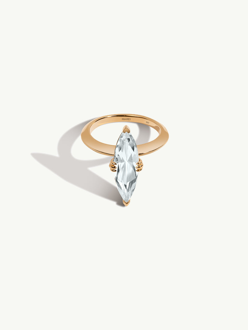 Marei Marquise-Cut White Aquamarine Beveled-Edge Engagement Ring In 18K Yellow Gold