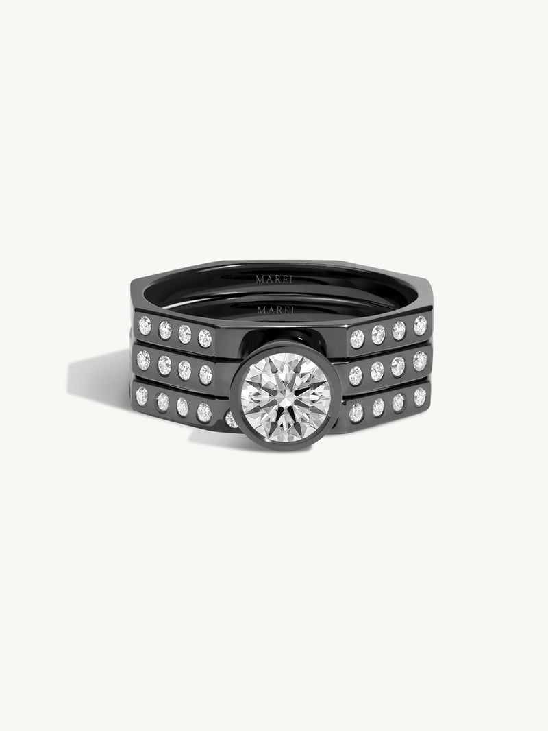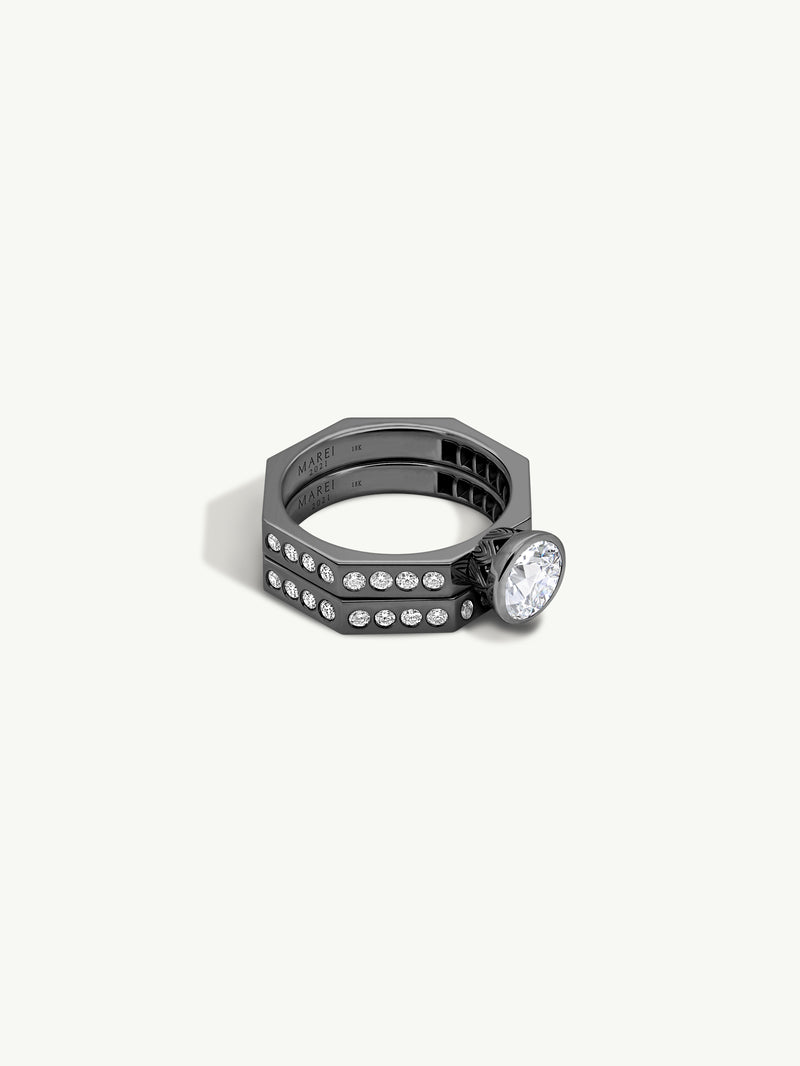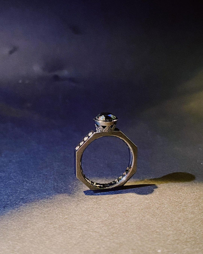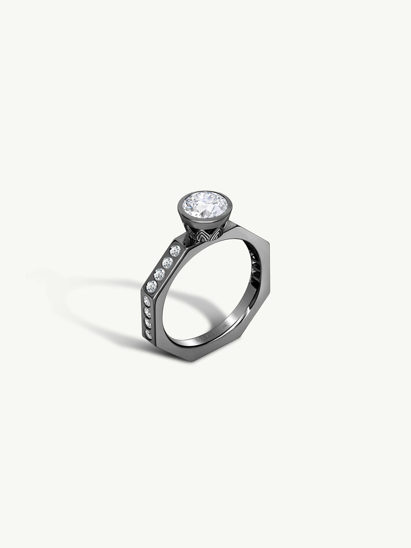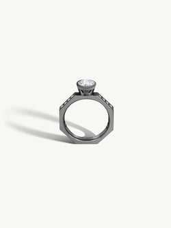 Octavian Lotus Engagement Ring With Round Brilliant-Cut White Diamond In 18K Blackened Gold