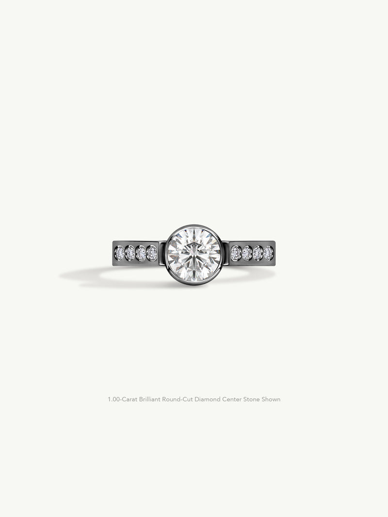 • Accent Stones: Gypsy-set brilliant-cut round natural white diamonds; Diamond Grade: DEF Color, VS+ Clarity. Approximately 0.25-carat total weight.