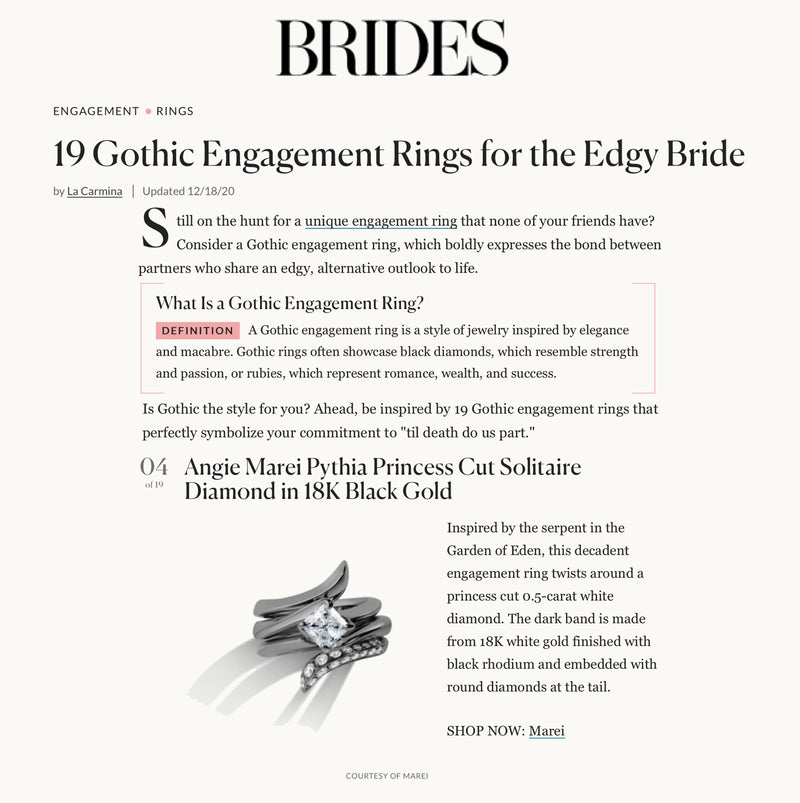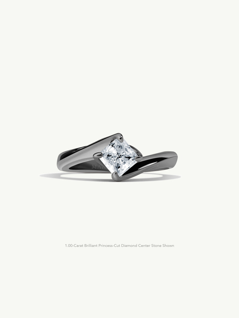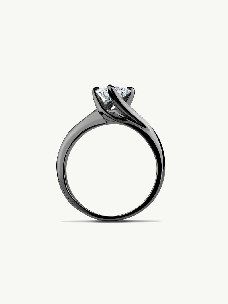 The Pythia Twist Princess-Cut Diamond Solitaire Engagement Ring by Angie Marei is a truly brilliant piece of jewelry that is sure to make any woman feel like a goddess. Featuring a brilliant Princess-Cut White Diamond mounted on a luxurious blackened 18-karat gold setting.