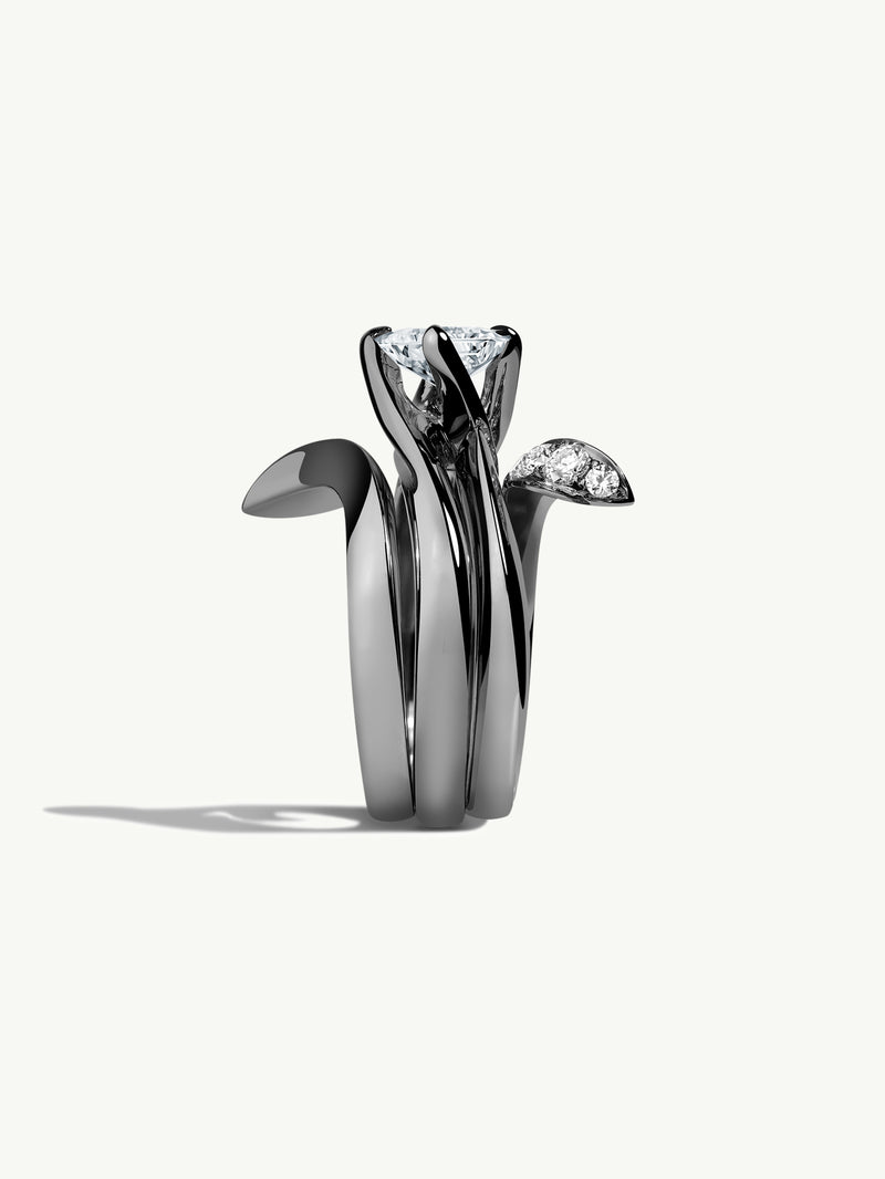 The ancient Egyptian-inspired bridal set of three stackable rings has been thoughtfully designed and created to resemble an elegant twisting serpent, the ancient symbol of immortality. When observed from the side, revealing a silhouette of a flower in bloom - a fusion of sculpture and jewelry that delicately captures the essence of femininity whispers erotic. Pythia, the name of the Greek goddess of prophecy, has been associated with mysticism and magic since ancient times.