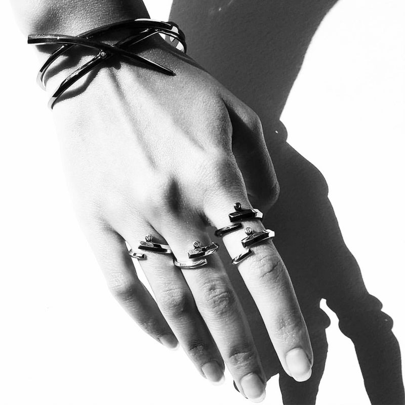 Gold vermeil is created using a thick layer of genuine gold plated over sterling silver, while black rhodium plating gives jewelry its striking dark, mirror-like sheen. Both finishes are achieved through a meticulous electroplating process that requires skill and precision to ensure an even, luminous coating.